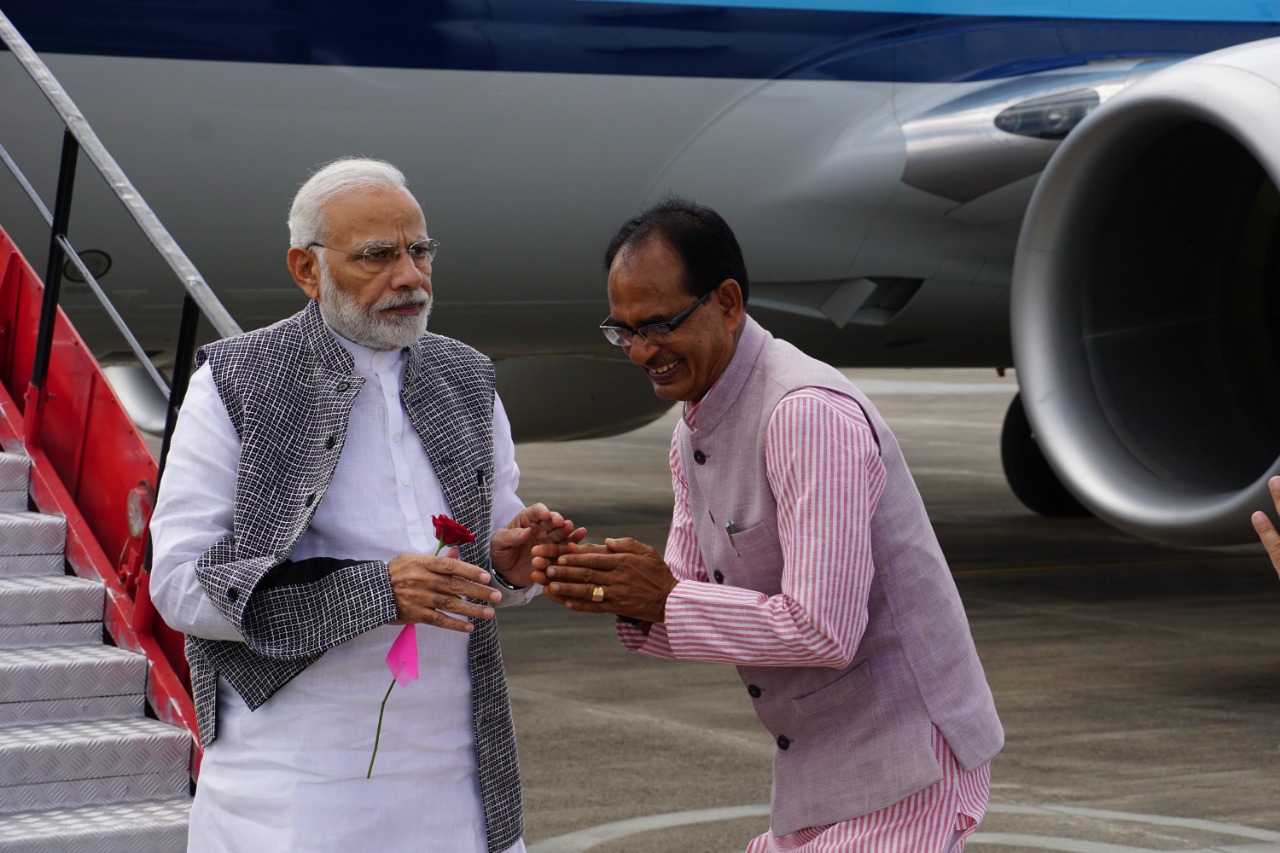 प्रधानमंत्री का आत्मीय स्वागत , शिवराज सिंह चौहान ने की अगवानी