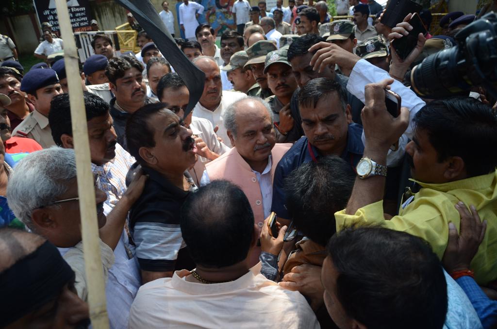 सवर्ण समाज ने केन्द्रीय मंत्री तोमर को दिखाए काले झण्डे