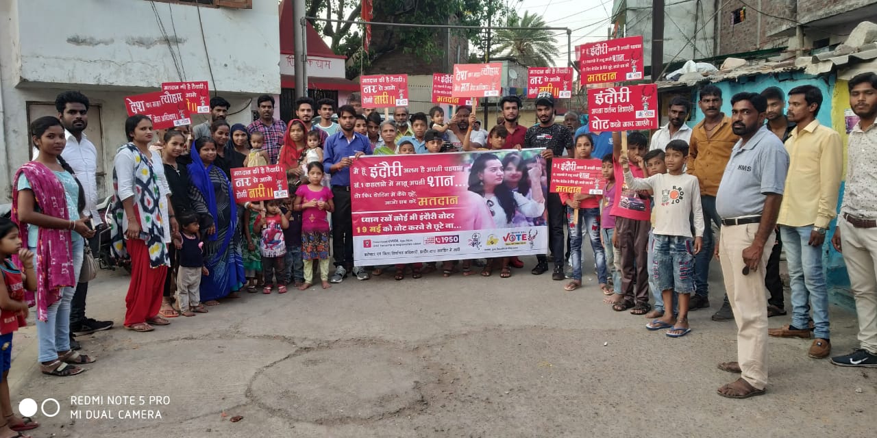 May 09 2019मतदाता जागरूकता अभियान जारी इन्दौर । इंदौर नगर पालिक निगम और सहयोगी संस्था ह्यूमन मेट्रिक्स द्वारा शहर की विभिन्न कालोनियों में मतदाता जागरूकता पाठशाला का आयोजन किया गया। पीपलियाहना, अशरफ़ नगर, स्कीम नो ५४, रुस्तम का बग़ीचा , बर्फ़ानी नगर में गत दिवस अभियान चालाया गय....