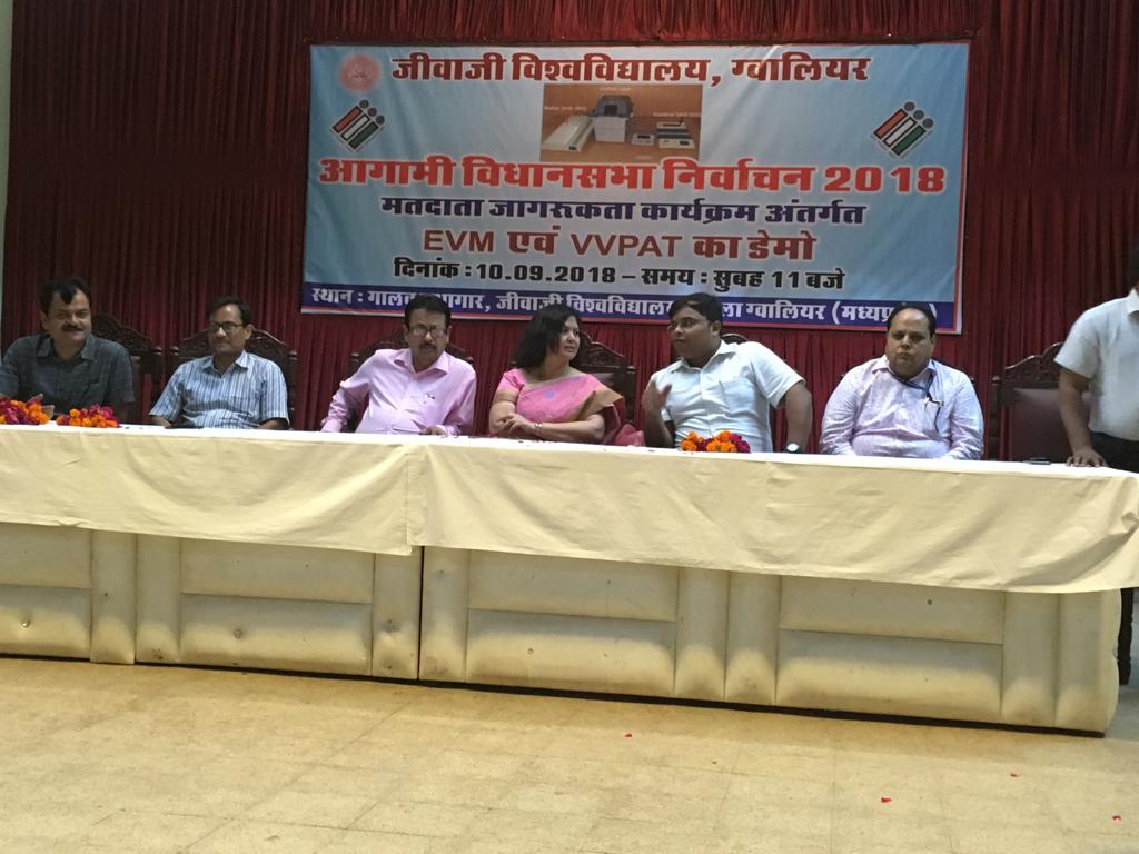 Sep 10 2018विधानसभा निर्वाचन-2018 छात्र-छात्राओं को निर्वाचन प्रक्रिया में भागीदार बनाकर किया जागरूक जीवाजी विश्वविद्यालय में वीवीपैट मशीन के उपयोग से छात्र-छात्राओं को कराया रूबरू ग्वालियर / निर्वाचन आयोग द्वारा मतदाताओं को मतदान के ....
