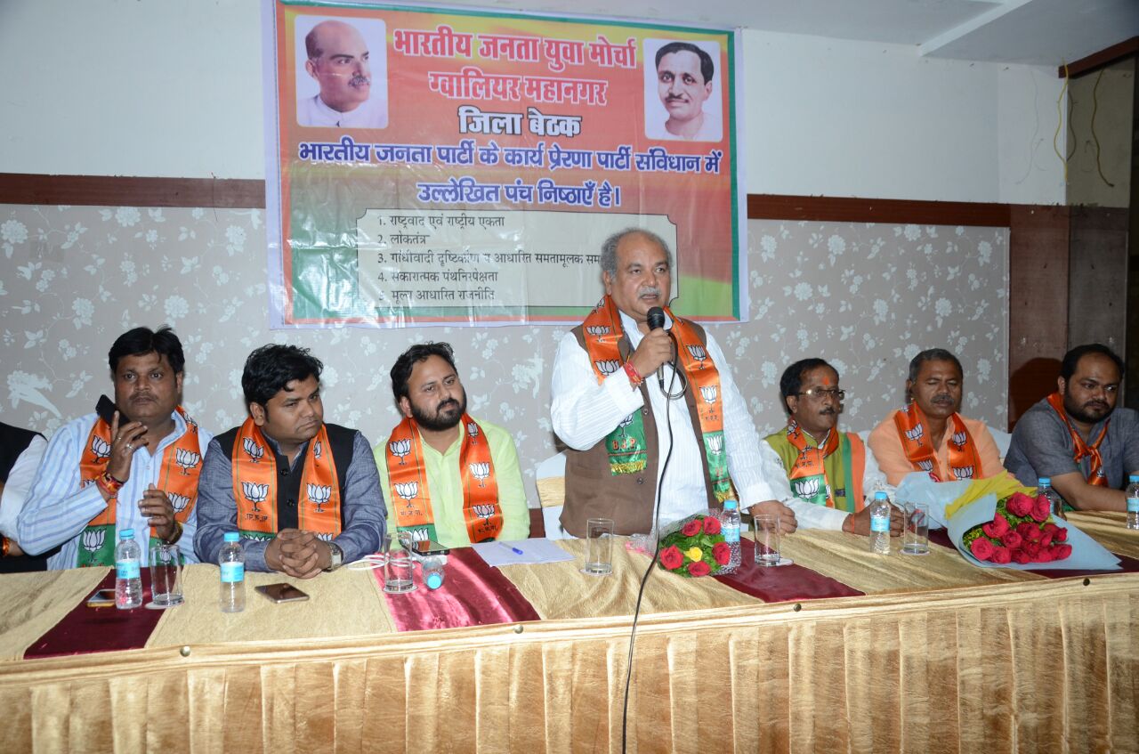 Sep 26 2018जो व्यक्ति अच्छा काम करते हैं उनकी हमेशा प्रशंसा होना चाहिए-तोमर युवा मोर्चा बनाएगा शौर्य दिवस 29 सितंबर को ग्वालियर । भारतीय जनता पार्टी सदैव से ही देश व समाज के लिए तत्पर रहकर कार्य करती रही है उसकी कढी को आगे बढाते हुए युवा मोर्चा भी देश व समाज के हित क....