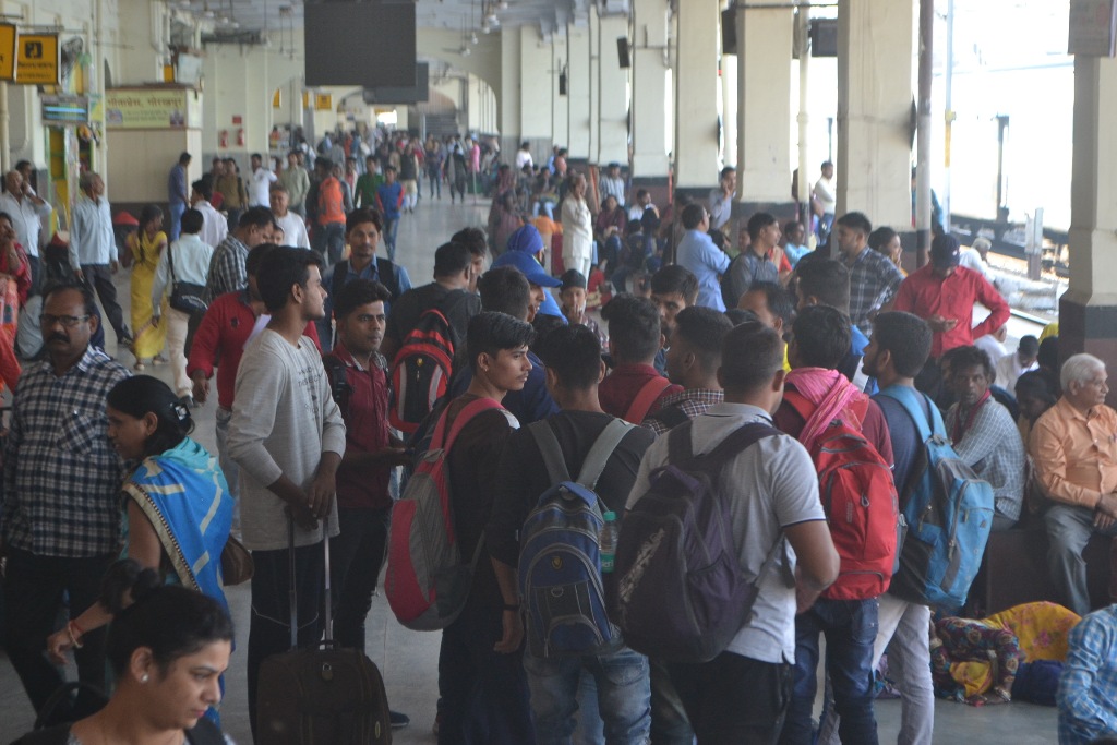 त्योहार नजदीक स्टेशन पर यात्रियों की भीड़